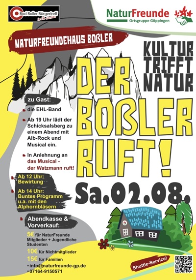 Aber wir bieten wieder im Rahmen „Natur trifft Kultur“ zusammen mit den Boßler Naturfreunden,zwei musikalische Schmankerl „open Air“ für alle Dahoimgebliebenen auf dem Boßler an.
