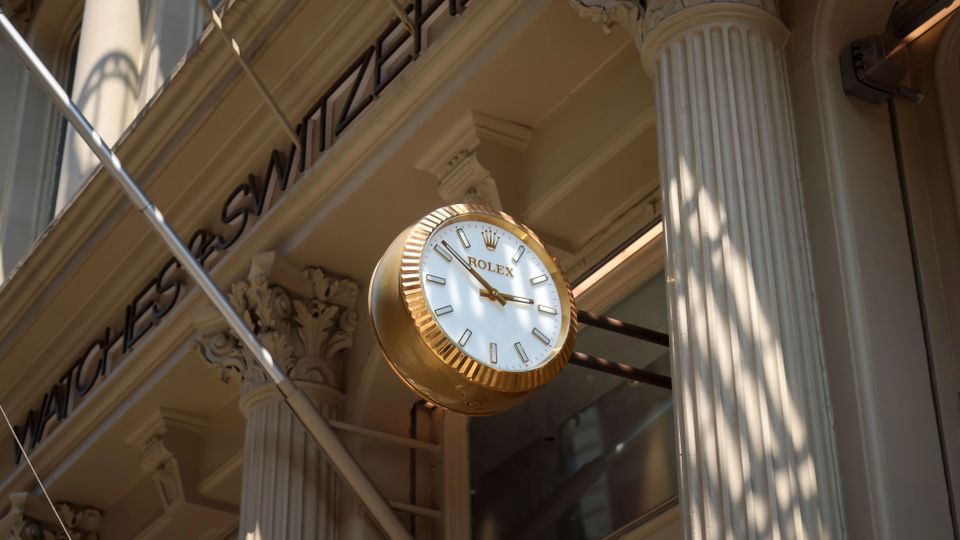 Rolex-Uhr vor Geschäft in New York