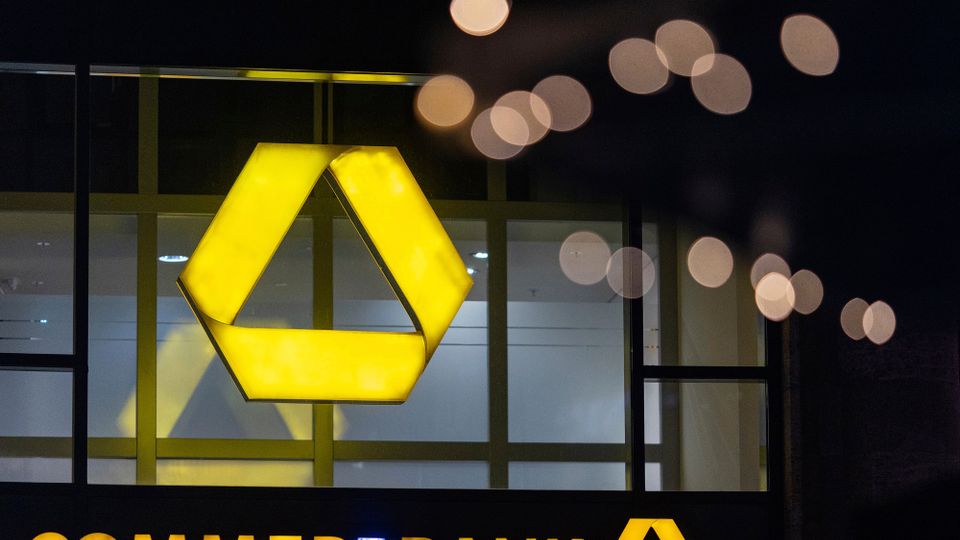 Commerzbank-Logo an einer Filiale in Berlin