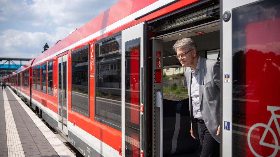 Verkehrsminister Patrick Schnieder (CDU) in einem Regionalzug der Deutschen Bahn: Man sei optimistisch