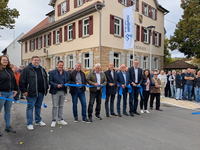 Jahrzehntelang stand die Optimierung der Ortsdurchfahrt auf der Wunschliste der Hepsisauer Bürgerinnen und Bürger und des sie vertretenden Ortschaftsrats. Ende 2021 machte das Gremium mit Zustimmung durch finalen Beschluss des Weilheimer Gemeinderats einen Knopf an das Konzept. Nach Monaten der Ausgestaltung und baulichen wie logistischen Planungen wurden die Bauarbeiten des rund sechs Millionen Euro schweren Projekts nun abgeschlossen. Gebührend gefeiert wurde dies mit einem Hock. Zur offiziellen Einweihung kamen auf Einladung von Bürgermeister Johannes Züfle auch Ministerialdirektor Berthold Frieß aus dem Ministerium für Verkehr Baden-Württemberg,CDU-Abgeordnete im Landtag von Baden-Württemberg Dr. Natalie Pfau-Weller und Grünen-Abgeordneter Andreas Schwarz.