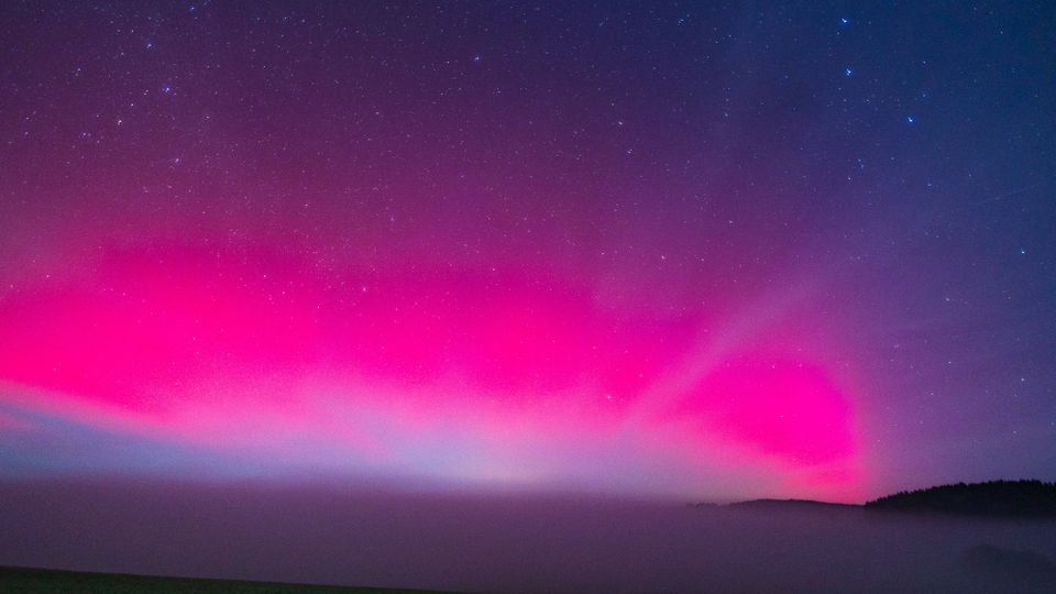 Frühaufsteher oder Langaufbleiber konnten sich in der Nacht von Dienstag auf Mittwoch über ein besonderes Spektakel am Himmel freuen: Polarlichter leuchteten über weiten Teilen Europas. In Deutschland waren sie vor allem im Süden gut zu beobachten; der Himmel leuchtete in rötlichen,pinken und grünen Farben.