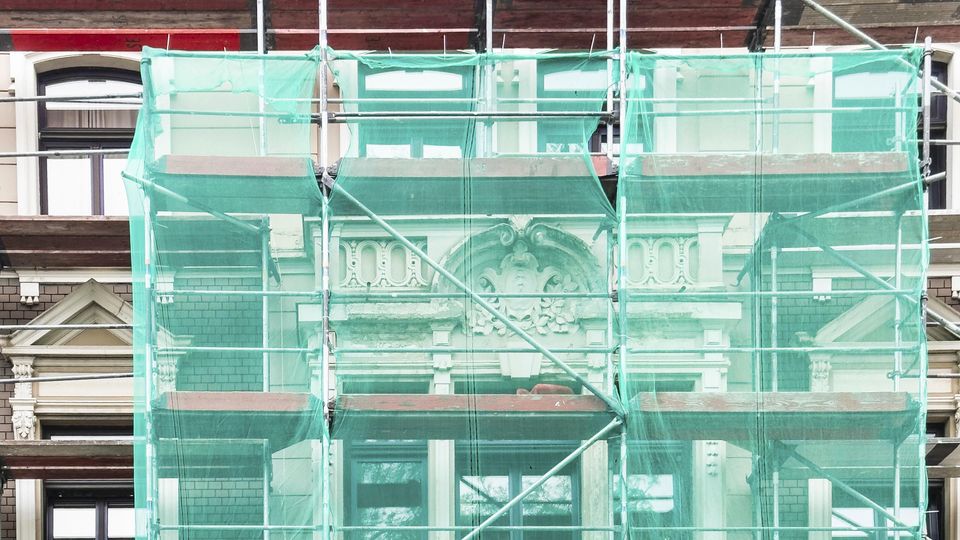 Eingerüstetes Mehrfamilienhaus in Wuppertal: 74 Prozent aller Inserate in niedrigen Energieeffizienzklassen