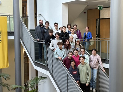Foto 1(Stadt Göppingen): Die Schülergruppe des Frankreichaustauschs des Freihof-Gymnasiums