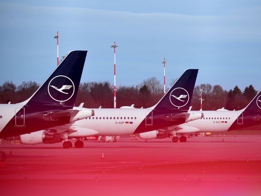 Lufthansa-Flugzeuge parken auf dem Hamburger Flughafen