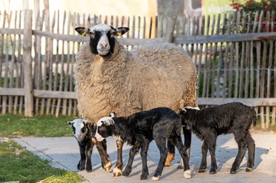 Frühlingsnachwuchs auf dem Asiatischen Schaubauernhof der Wilhelma: Drillinge bei den Romanovschafen